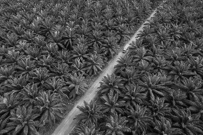 Sepanjang perjalanan di sebelah kiri dan kanan kami hanya ada pohon kelapa sawit. Sebuah pemandangan yang membosankan. Tidak ada bukit, sungai yang mengalir, burung-burung berkicau. Bahkan tidak ada angin. Hanya pohon kelapa sawit yang berbaris kaku dan diam menunggu untuk dipanen. Di mata saya, pohon sawit serupa dengan mesin produksi berbahan bakar pupuk urea.