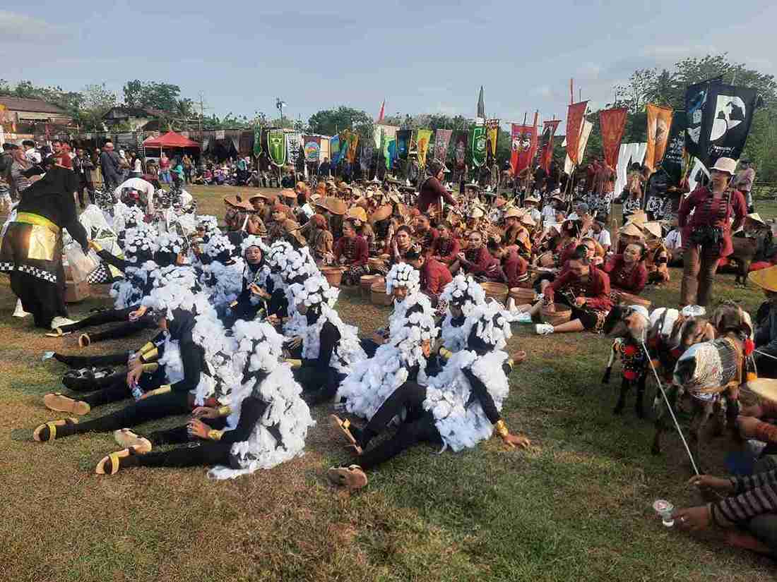 Arak-arakan penampil berkostum kambing sebagai simbol berkah ternak masyarakat Gunungkidul